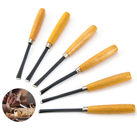 6pcs ליטוש חום טיפול עץ ידית פחמן פלדה נגרות חריטת עץ גילוף אזמל סט ערכה