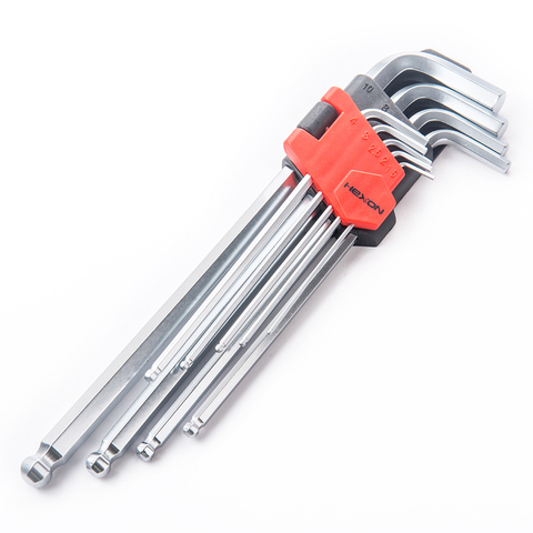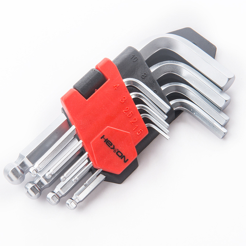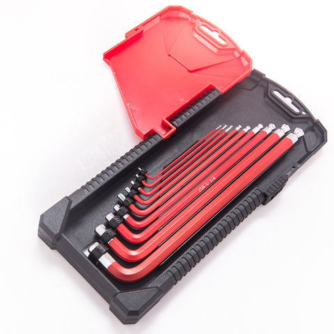 Kit de herramientas manuales para reparación de bicicletas, 9 Uds., tamaño en forma de L, brazo largo, cabeza de bola, llave hexagonal Allen, juego de llaves