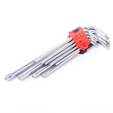 Kit de herramientas de mano para reparación de bicicletas, 9 Uds., tamaño en forma de L, a prueba de manipulaciones, juego de llaves Allen Star Torx