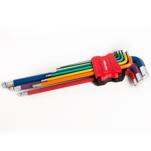 Kit de herramientas de mano para reparación de bicicletas, 9 Uds., forma de L métrica, colorido, brazo extra largo, cabeza de bola, juego de llaves hexagonales