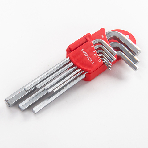 Kit de herramientas de mano para reparación de bicicletas, 9 Uds., tamaño en forma de L, brazo largo, llave hexagonal Allen, juego de llaves hexagonales
