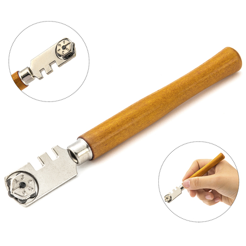 Holzgriff Bleistiftstil-Spiegel Fliesenspiegel Mosaikschneidegerät Sechs-Rad-Glasflaschenschneider
